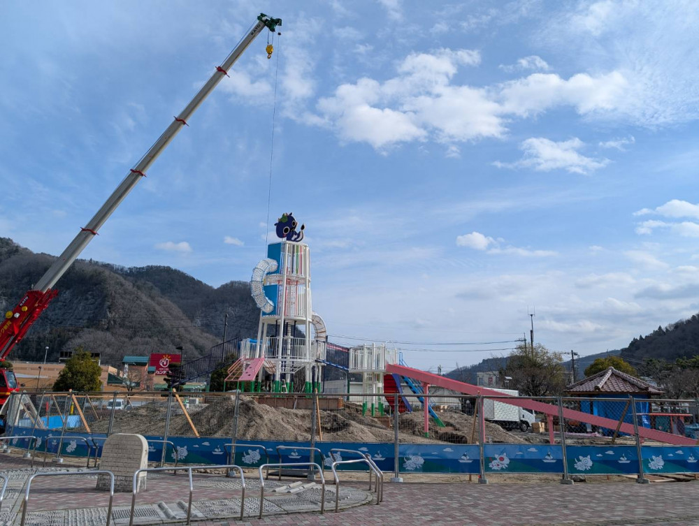 市制施行20周年を記念し、新見市憩いとふれあいの公園内わんぱく広場の遊具をリニューアルします。本市の未来を担う次世代の子どもたちへつなぐため、リニューアル後にはマスコットキャラクター「にーみん」がシンボルとなった遊具を設置する計画です。