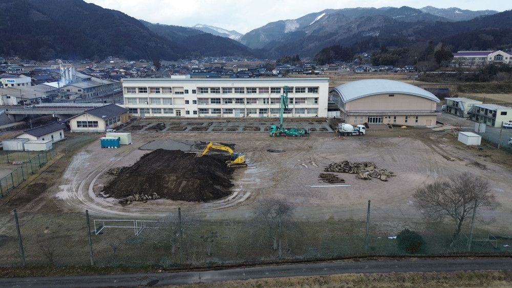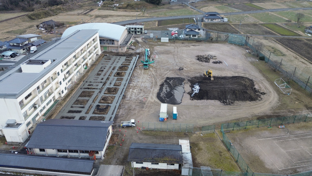 ◯大佐中学校区小中一貫校校舎新築工事進捗状況(令和8年2月2日撮影)