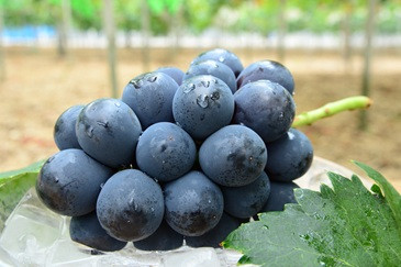 新見のピオーネは、大きな粒とすばらしい色づきが特徴で、味は強い甘みとほどよい酸味のバランスが絶妙です。