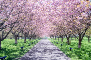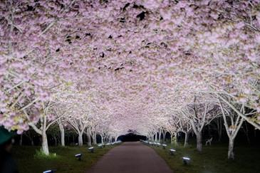 カンザンの約200メートルのトンネルは圧巻!約10種類・約700本の桜が次から次へと咲き誇ります。
