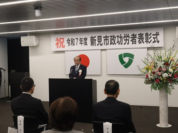 令和7年度新見市政功労者表彰式を行いました。市政に貢献いただいた皆さんの長年のご尽力に深く感謝するとともに、今後の市政運営の励みとなる表彰式でした。