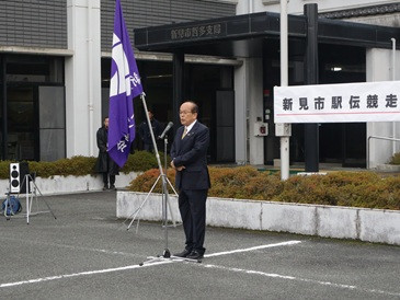 新見市駅伝競走大会に出席しました。選手たちの熱い走りと沿道の応援で、盛り上がりあふれる大会でした。