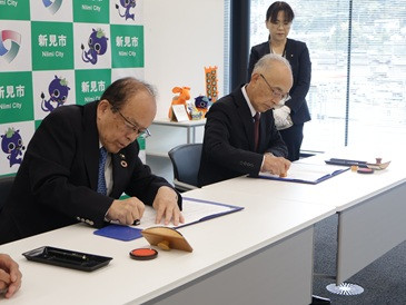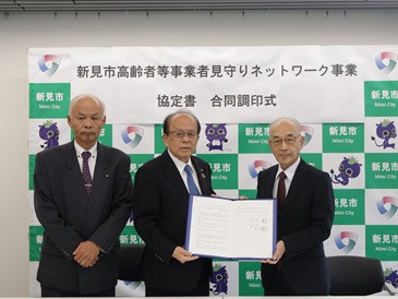新見市高齢者等事業者見守りネットワーク事業協定書合同調印式