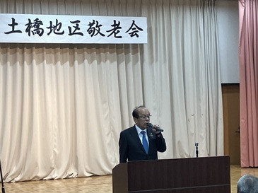 土橋地区敬老会に出席しました。今後とも、地域の要として、皆さまが活躍されることを期待しております。