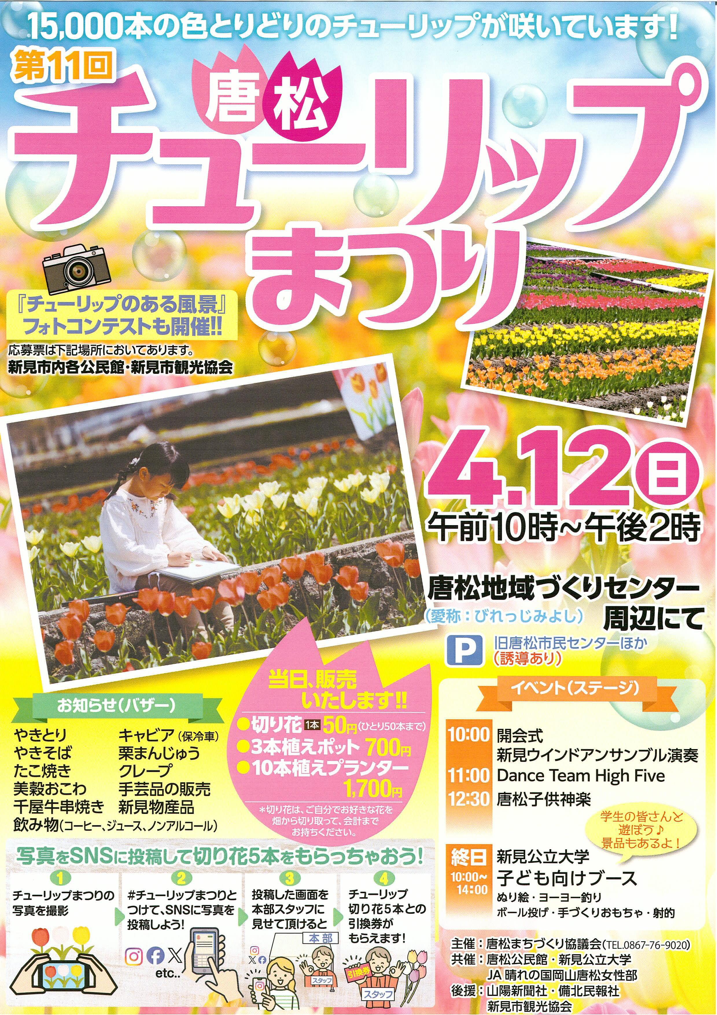 4月12日(日)に唐松地域づくりセンター(旧唐松小学校)周辺にて「第11回唐松チューリップまつり」が開催されます!