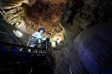 満奇洞とは違い洞内に高低差のある鍾乳洞なので、運動不足の石原さんは無事ゴールできるのでしょうか・・・?!!
