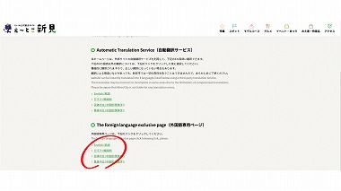 例えば、【Automatic Translation Service(自動翻訳サービス)】から、English(英語)を選択すると、英語に翻訳されたページが表示されます。