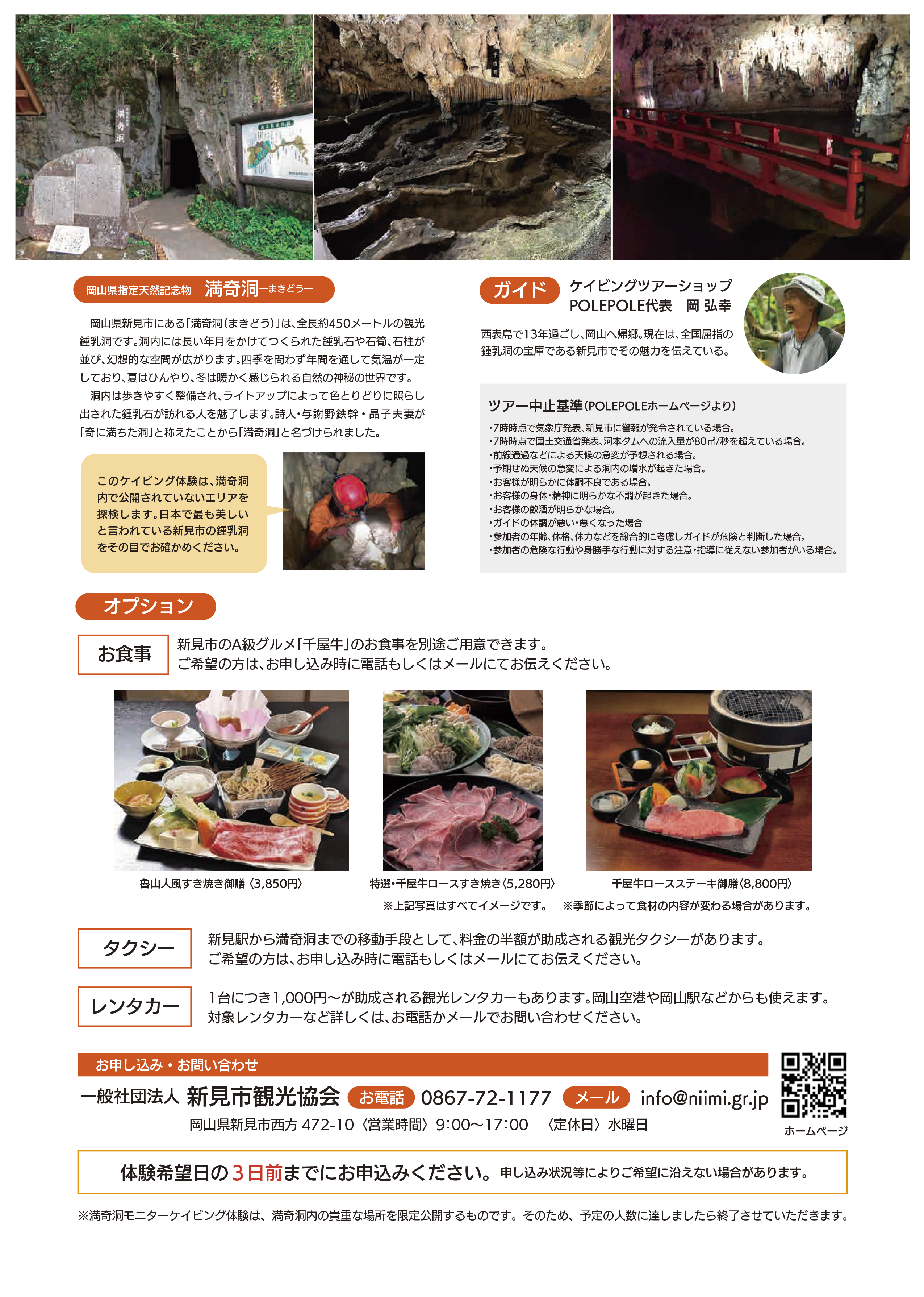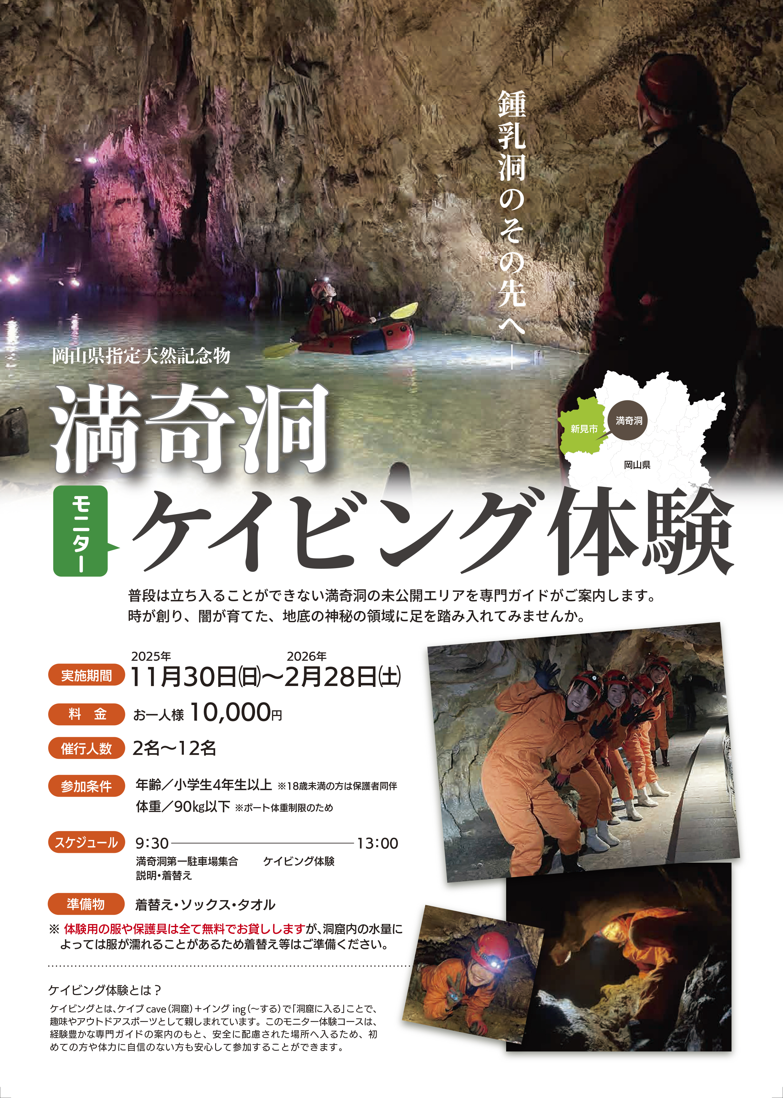 ※満奇洞モニターケイビング体験は、満奇洞内の貴重な場所を限定公開するものです。