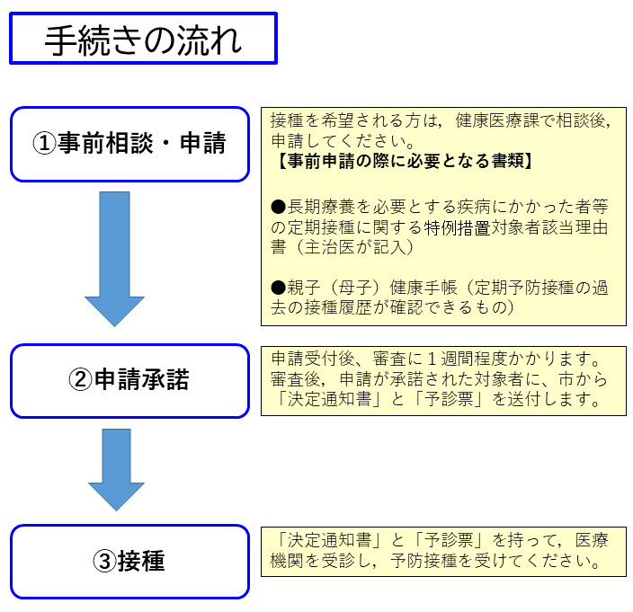 長期にわたり療養を必要とする疾病にかかるなど特別の事情があったことにより、やむを得ず定期予防接種が受けられなかった方