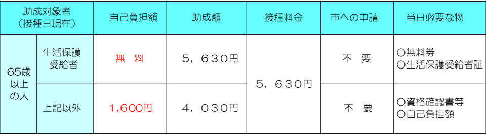 (接種料金)-(助成額)※接種料金は、各医療機関で異なります。