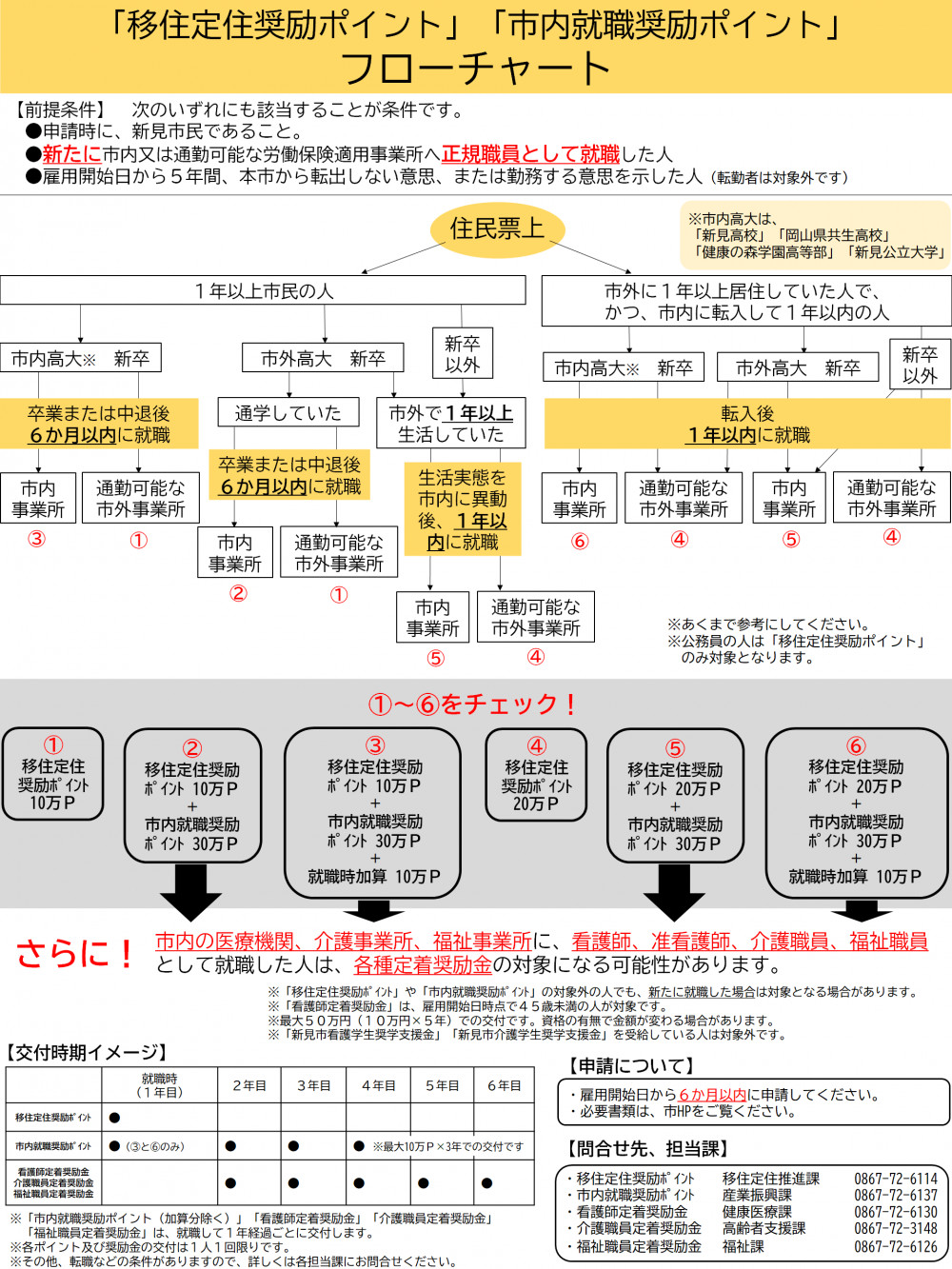 雇用開始の日から6カ月以内に、次の書類を移住・定住推進課へ提出してください。1 新見市移住定住奨励ポイント交付申請書(様式第1号)