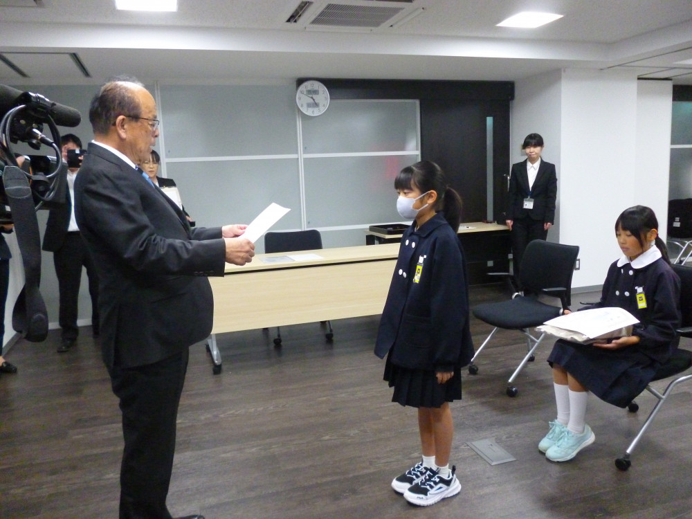 審査の結果、最優秀賞1点、優秀賞2点を決定し、表彰式を行いました。また最優秀作品の懸垂幕を作成し、市役所本庁舎に掲示しました。