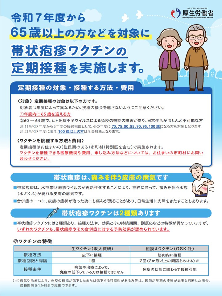 帯状疱疹の定期接種を4月から開始します。【帯状疱疹予防接種の定期接種対象者】