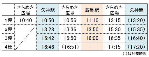 ③野馳駅、矢神駅、市岡駅のいずれかに返却