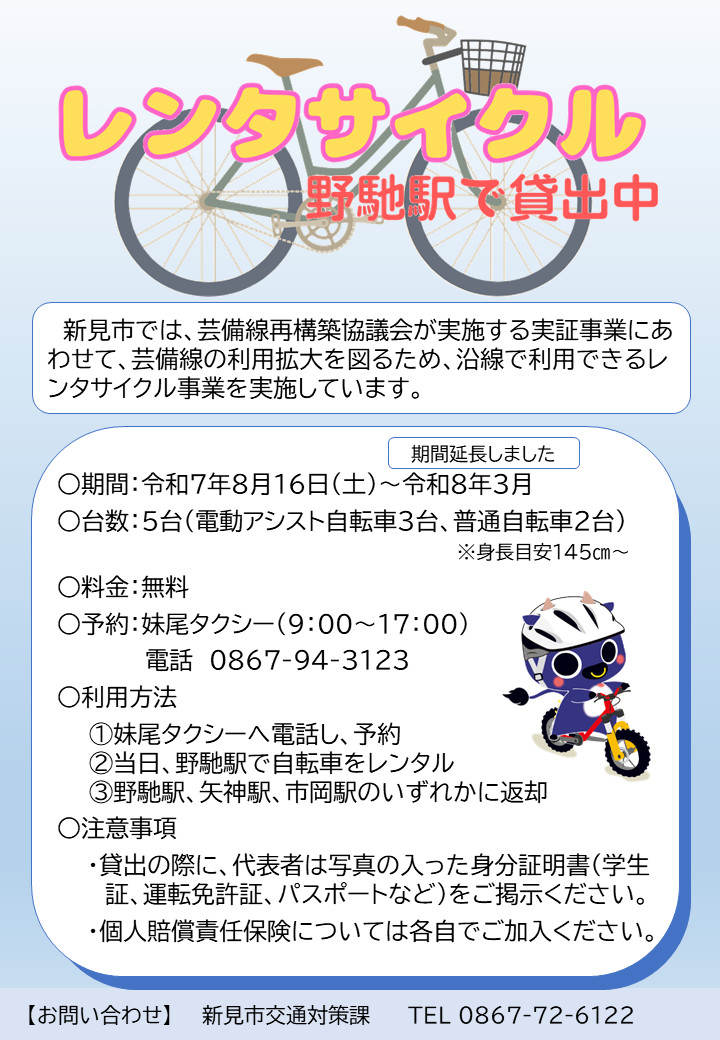 〇レンタサイクルの実施(8/16~3/31)※期間延長
