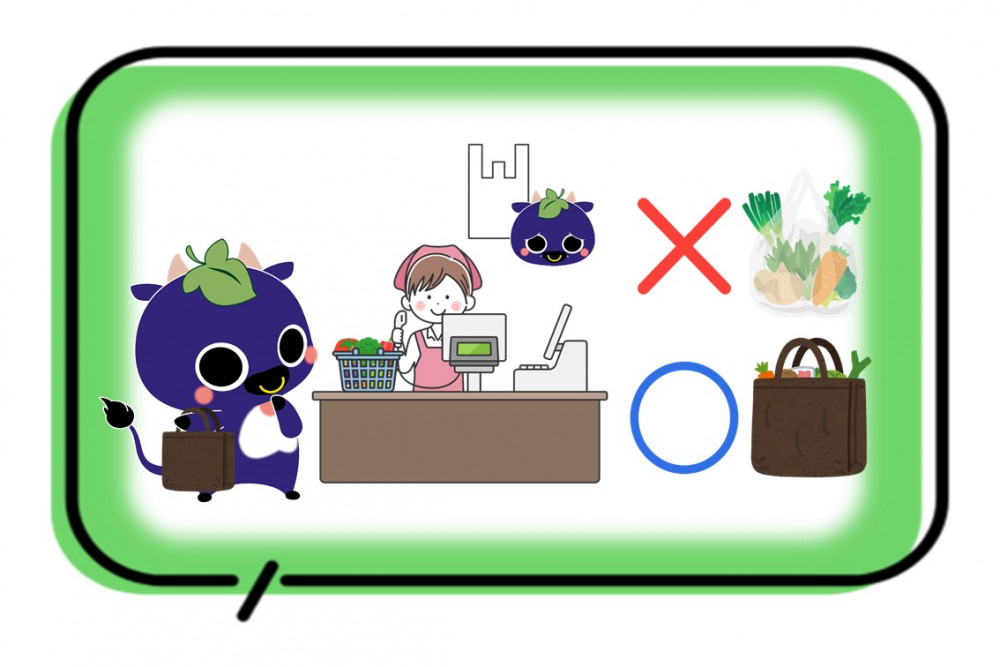 ごみになる物を発生源から断とう!●過剰包装は断る ●レジ袋は断り、マイバックを使用する ●試供品やノベルティは、本当に必要なものだけを受け取る ●使い捨てのスプーンやフォーク、割り箸は断り、「マイはし」を持参する ●使い捨てとなる紙コップの使用は控え「マイコップ」を利用する |