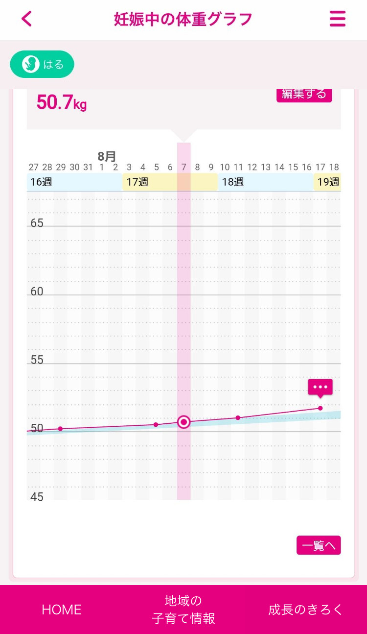 体重を記録すると、自動でグラフが作成され、簡単に変化を確認することができます。
