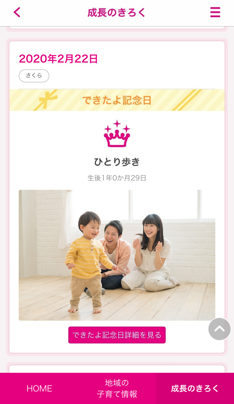 また、妊娠してからのさまざまなイベント、子ども日々の成長を、写真とコメントで記録もできます。