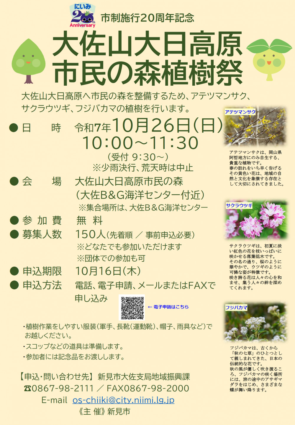 市制施行20周年記念「大佐山大日高原市民の森植樹祭」を開催します!