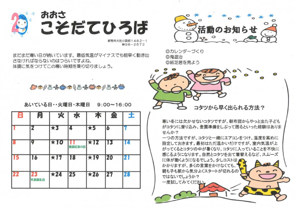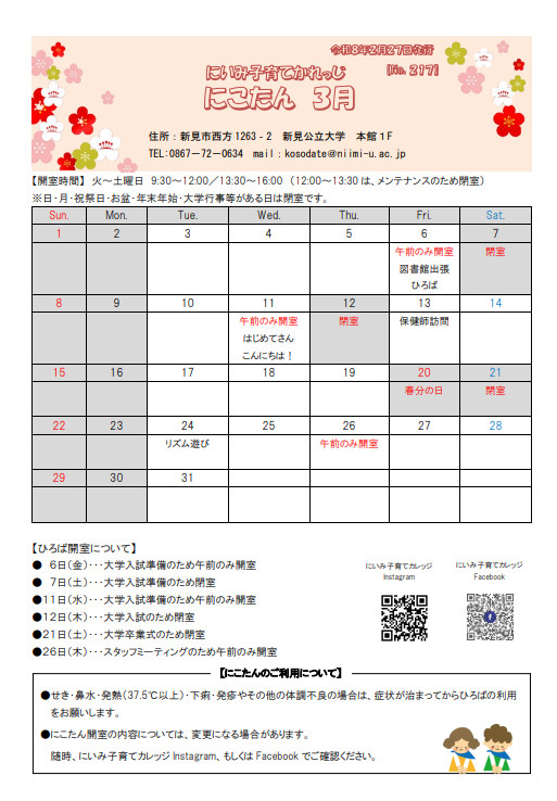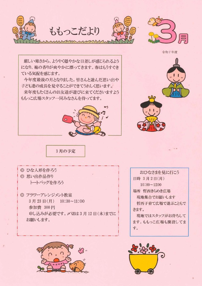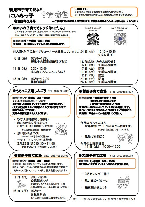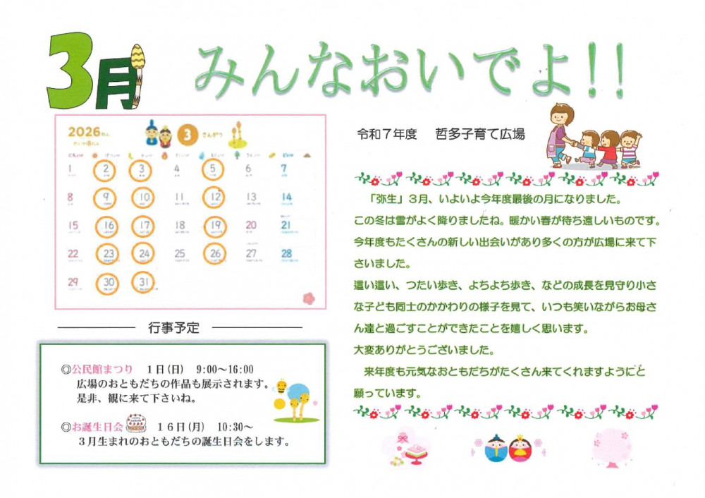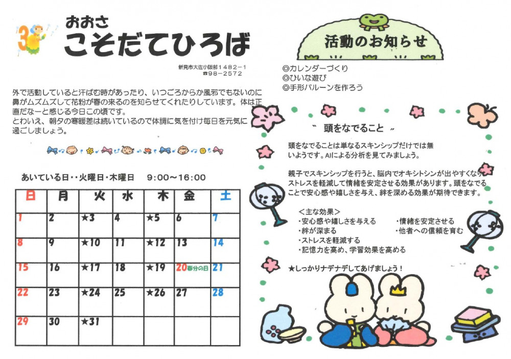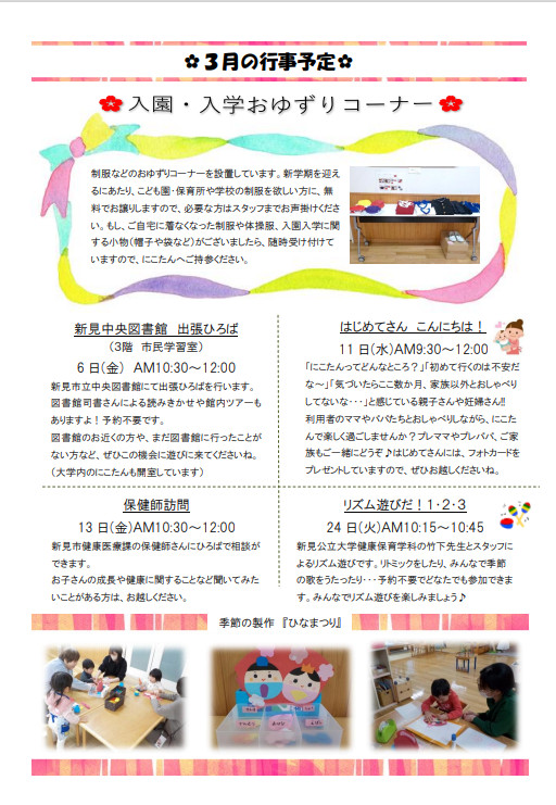 子育て広場からのお知らせ 3月号を更新しました