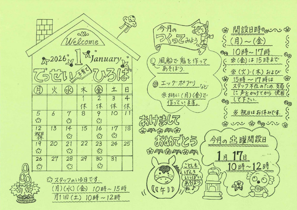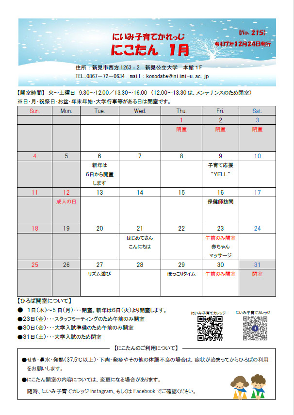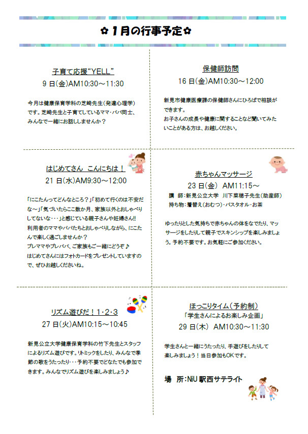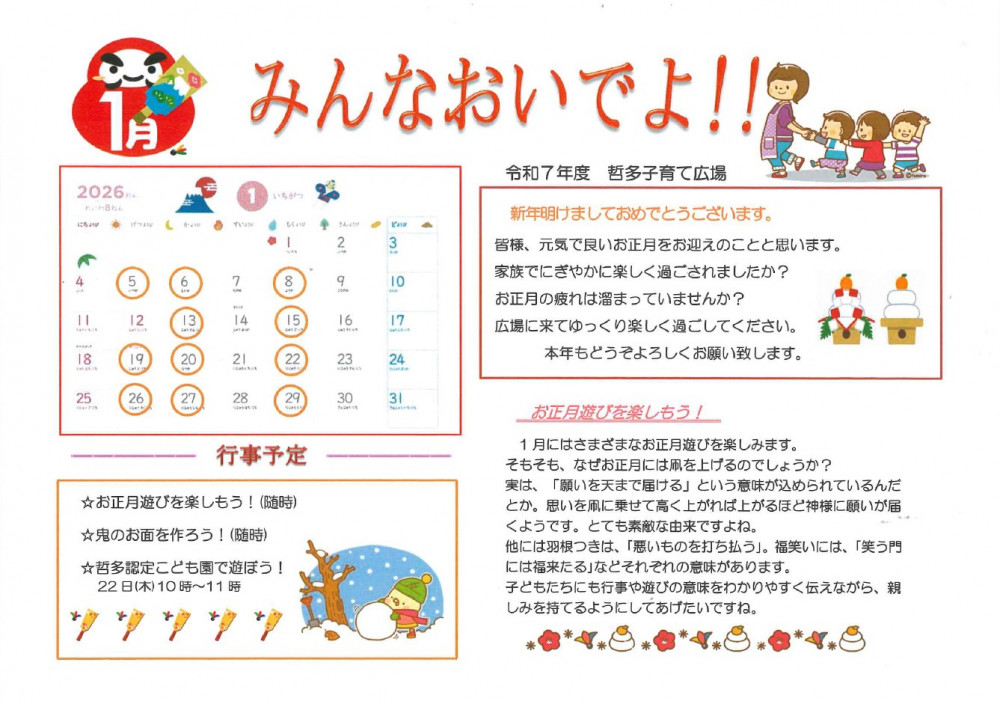 子育て広場からのお知らせ 1月号を更新しました