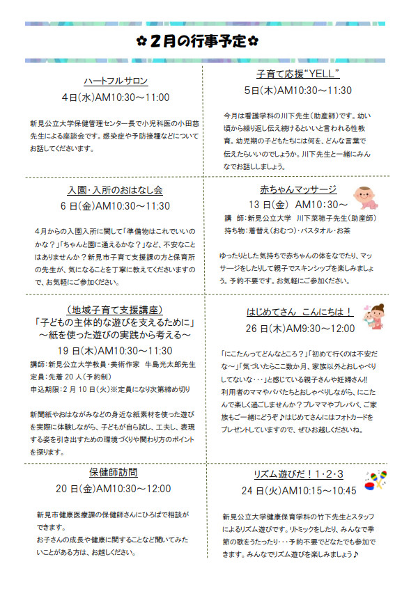 - 子育てひろばからのお知らせの過去アーカイブを載せています。