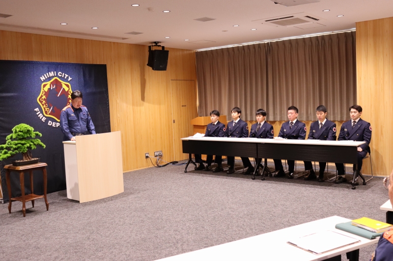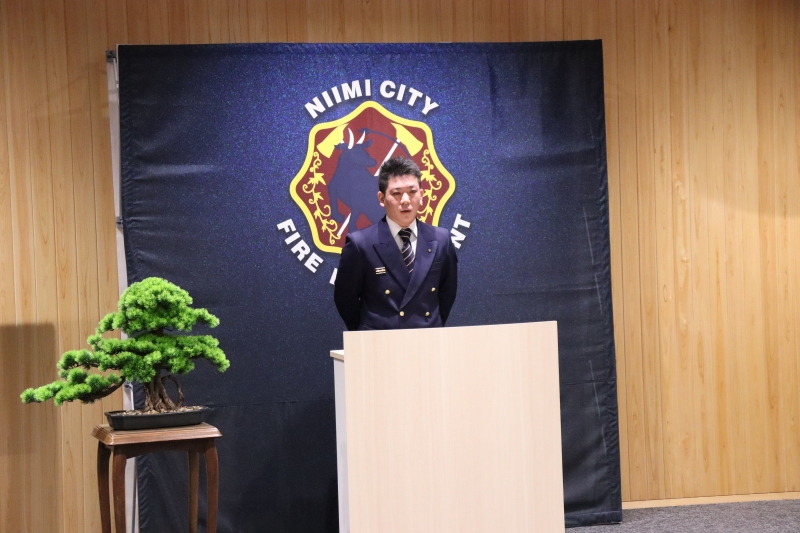 この日、新見市消防本部の代表を選考するため、各所属の代表による予選会を行いました。消防職員意見発表とは、消防職員が日ごろの職務経験や業務改善の提案、取り組むべき課題などについて自由に発表し、消防業務全般の知識向上、職員の意識高揚、組織力強化を図ることを目的としたスピーチコンテスト形式の大会で、県大会、中国地区大会、全国大会まであります。予選会の結果、大佐分署の消防士が「SNSを活用した山火事情報の共有と啓発」と題し、4月に行われる岡山県大会に出場することが決定しました。新見市消防本部を代表して、頑張って中国大会に進出することを願います。