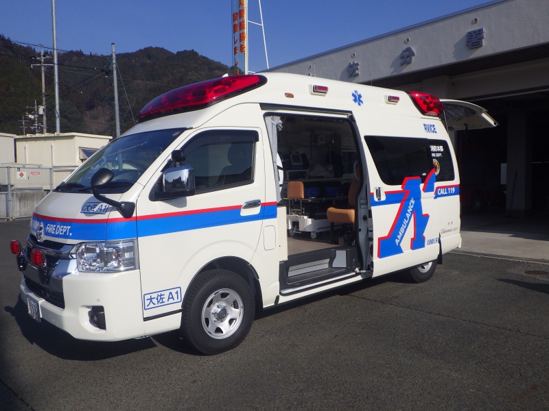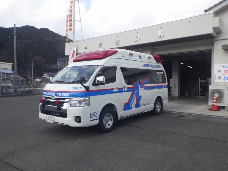 2026年03月25日 令和8年3月吉日 日本損害保険協会より高規格救急自動車が寄贈され、大佐分署に配備しました。 この度、一般社団法人 日本損害保険協会より地域社会の安全・安心への貢献として「高規格救急自動車」1台の寄贈を受け、令和8年3月6日、大佐分署に配備しました。寄贈された救急車は、最新の高度救急処置資器材を装備しており、一刻を争う救急現場において、傷病者に対する迅速かつ適切な処置を可能にするものです。当消防本部では、この新たな車両を最大限に活用し、より一層の救急救命体制の充実を図るとともに、市民の皆様の生命・身体・財産を守るため、日々の訓練と迅速な現場出場に励んでまいります。