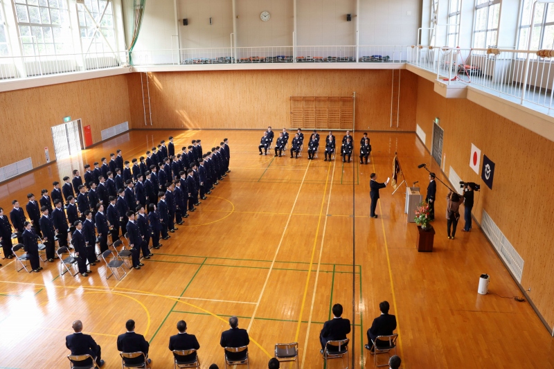 2026年04月07日 岡山県消防学校 入校式 令和8年4月6日(月)午前10時から岡山県消防学校において、令和8年度消防職員第76期初任教育の入校式が挙行されました。今年度は、県下14消防(局)本部から64名が入校しました。新見市消防本部からも4名の新採用職員が入校しました。これから半年間、全寮制で、消防・救急救助の現場活動訓練はもとより、訓練礼式、消防法や消防に関するあらゆる基本を学びます。