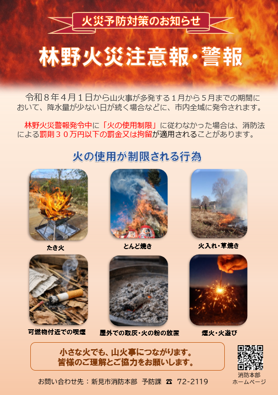 林野火災予防の実効性を高めるため、令和8年4月1日から「林野火災注意報・警報」の運用を開始します。
