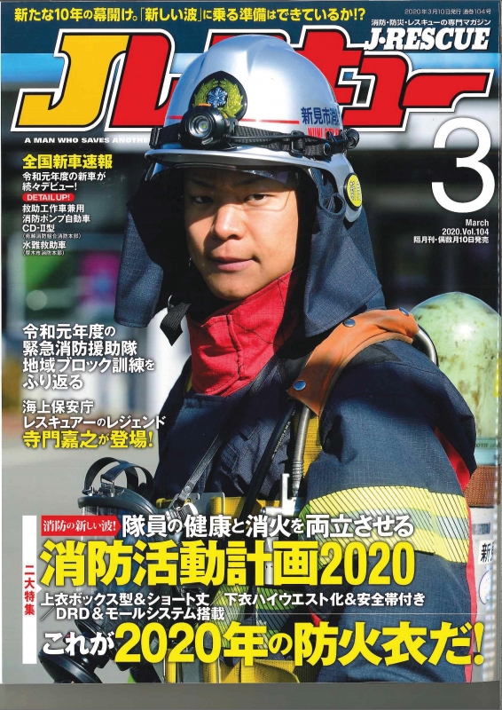 イカロス出版から発行された、消防・防災・レスキューの専門マガジン「Jレスキュー」3月号に、令和元年度から3年計画で更新される、新見市消防本部の防火服が紹介されました。また、同5月号「全国消防署ファイル」の記事に、新見市消防署の車両や施設、職員が紹介されました。