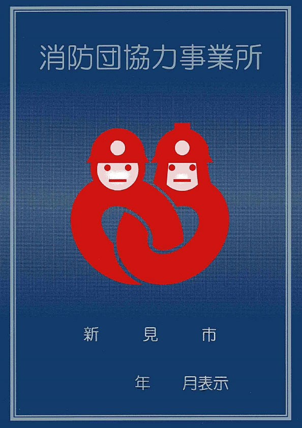 事業所の消防団活動への協力が社会貢献として広く認められるとともに、事業所による消防団活動への協力を促進し、消防団員の更なる確保を図ることを目的として、「消防団協力事業所」として認定した事業所に、表示証を交付する制度です。