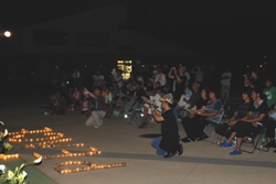 | ニューヨークの同時多発テロでは、およそ3000人の方が犠牲になりました。今日の会場にはその6分の1のおよそ500個のキャンドルの灯が灯されて、犠牲者の冥福を祈りました。 | |