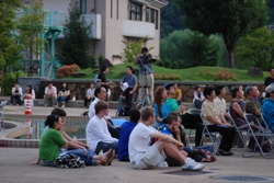 | 会場の雰囲気です。今回の「新見市憩いとふれあいの公園」は思い思いの場所に腰かけて、コンサートを楽しむことができました。スタッフの方々も楽しんでいただけました。 | |